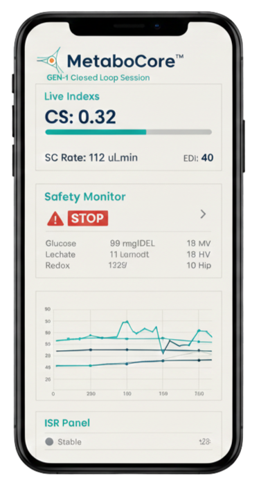 At its core, Metabo Core™ integrates multi-modal biosensing (metabolic, redox, electrophysiological, and autonomic signals) with a closed-loop decision framework. Instead of passively observing biomarkers, it actively constructs and manages metabolic signal states detecting inconsistencies, stress signatures, and maladaptive cellular behaviors in real time.
